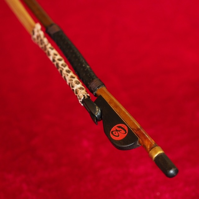 二胡専門店red Bridgeと、著名二胡弓製作家・王小迪氏との共同開発により誕生。試作と改良を繰り返し、中央音楽学院生、日本人二胡奏者の方々のテストを経て、完成しました。 【无拘音(むぐね)】 弓竹には、極上のしなやかさを追求して、弓全体に節がない厳選無節竹を採用。弓毛には、最上位の尊品クラス頂級馬尾を使用。 持ち手部の毛を束ねる管(套管)には、滑りにくさと耐久性を求めて蛇皮を使用。 巻革には、滑りにくく、竹への指あたりを柔らかくするためパンチングした羊皮を使用。 套管(持ち手部の毛を束ねるチューブ)の長さは、 ■短め:薬指と中指の半分ほどが毛に触れ、弦を摩擦する感覚を感じる(劉長福弓の仕様)。 ■標準長:指が毛に触れにくく、従来の指当たり。 の2種類をラインナップ。 【この弓の特徴】 竹 : 厳選無節竹 弓の長さ : 約83cm 毛質 : 尊品馬尾(頂級馬尾) 弓の弾力 : 標準 套管長さ : 標準