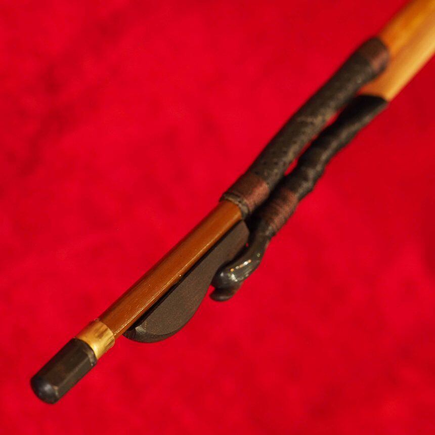 臻品紅竹(紅竹の上級グレード)がベース。竹の持ち手部分には耐久性が高い蛇皮の巻革が施されています。