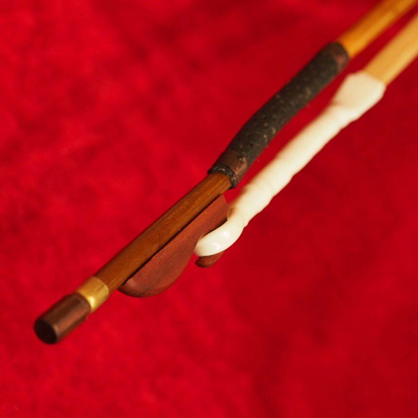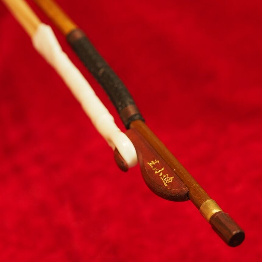 雄の馬毛を張り、滑り防止のために持ち手部分に巻革(蛇革)が施されています。