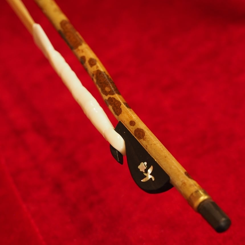湘妃竹は竹の節がやや多めで、竹全体が均一にしなるため扱いやすい弓です。