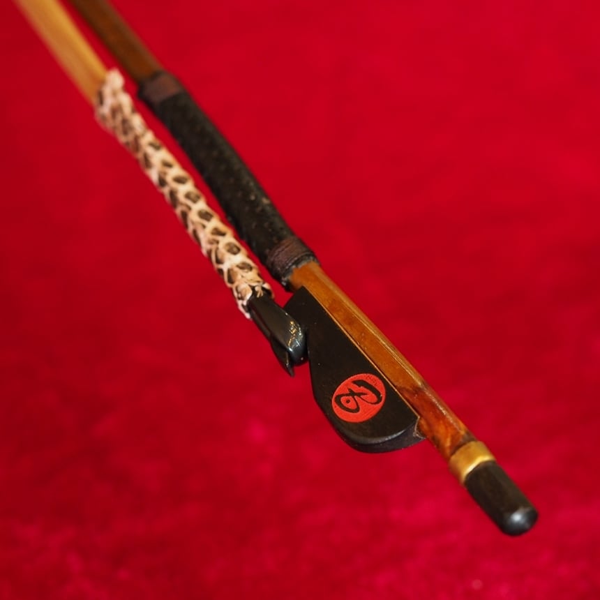 弓竹には、極上のしなやかさを追求して、弓全体に節がない厳選無節竹を採用。弓毛には、最上位の尊品クラス頂級馬尾を使用。
