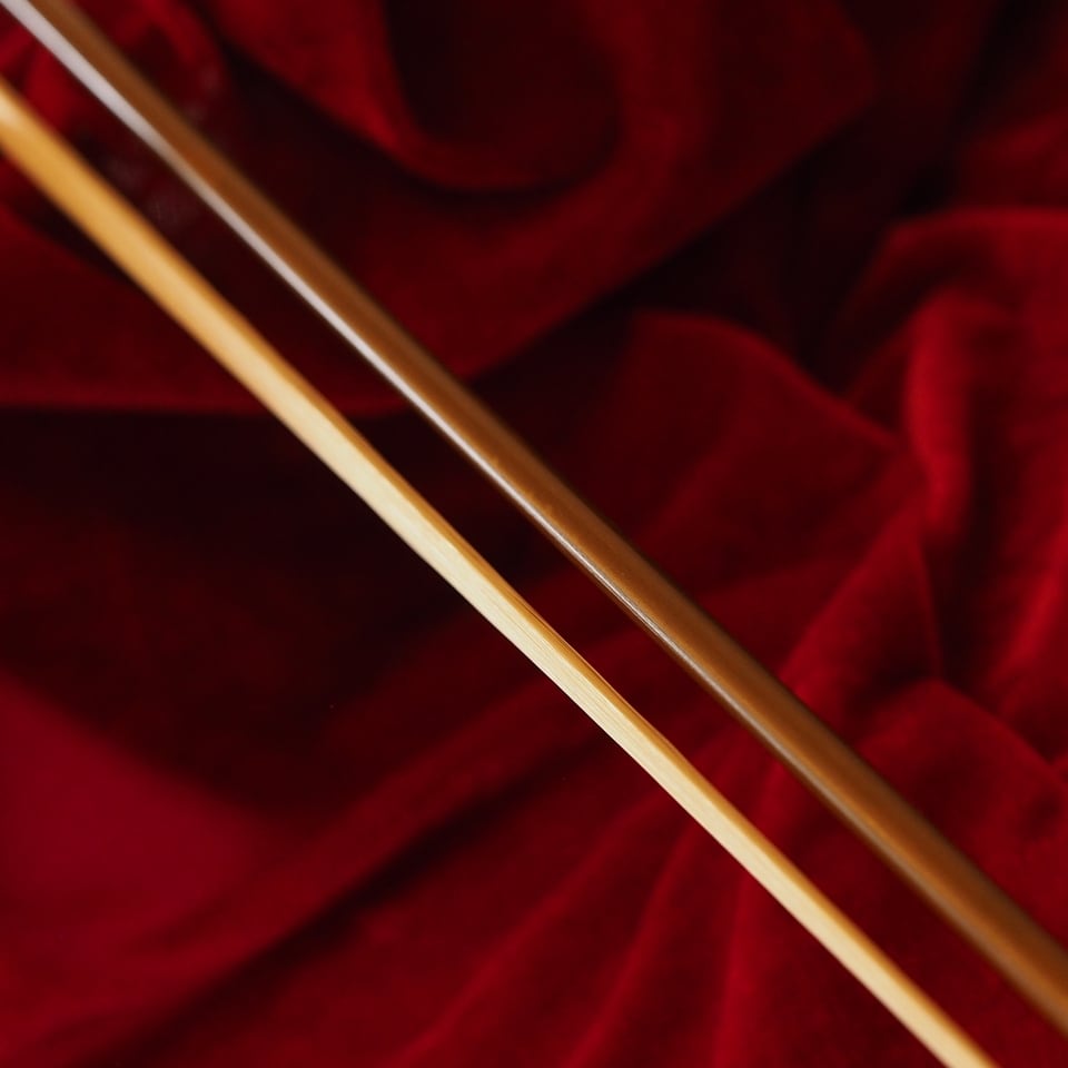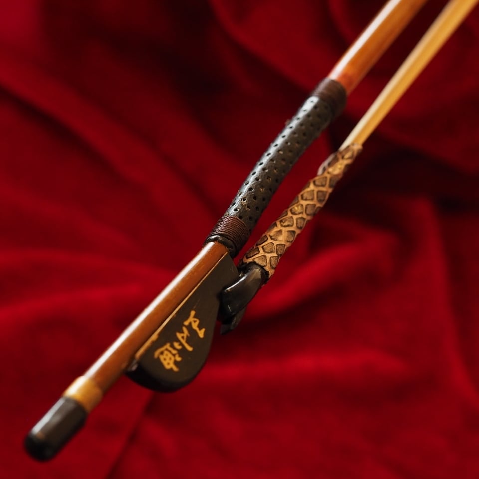 弓竹には、節の位置が後方にあり弓全体の靭性とバランスがとれた厳選紅竹を採用。弓毛には、最上位の尊品クラスに近い、厳選された無漂白の白馬雄尾を使用。
