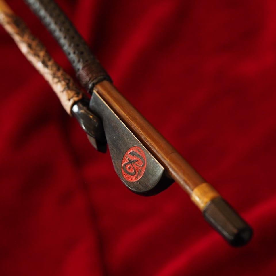 巻革には、滑りにくく、竹への指あたりを柔らかくするためパンチングした羊皮を使用。