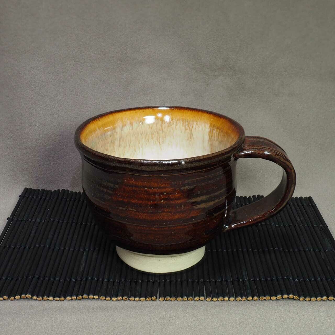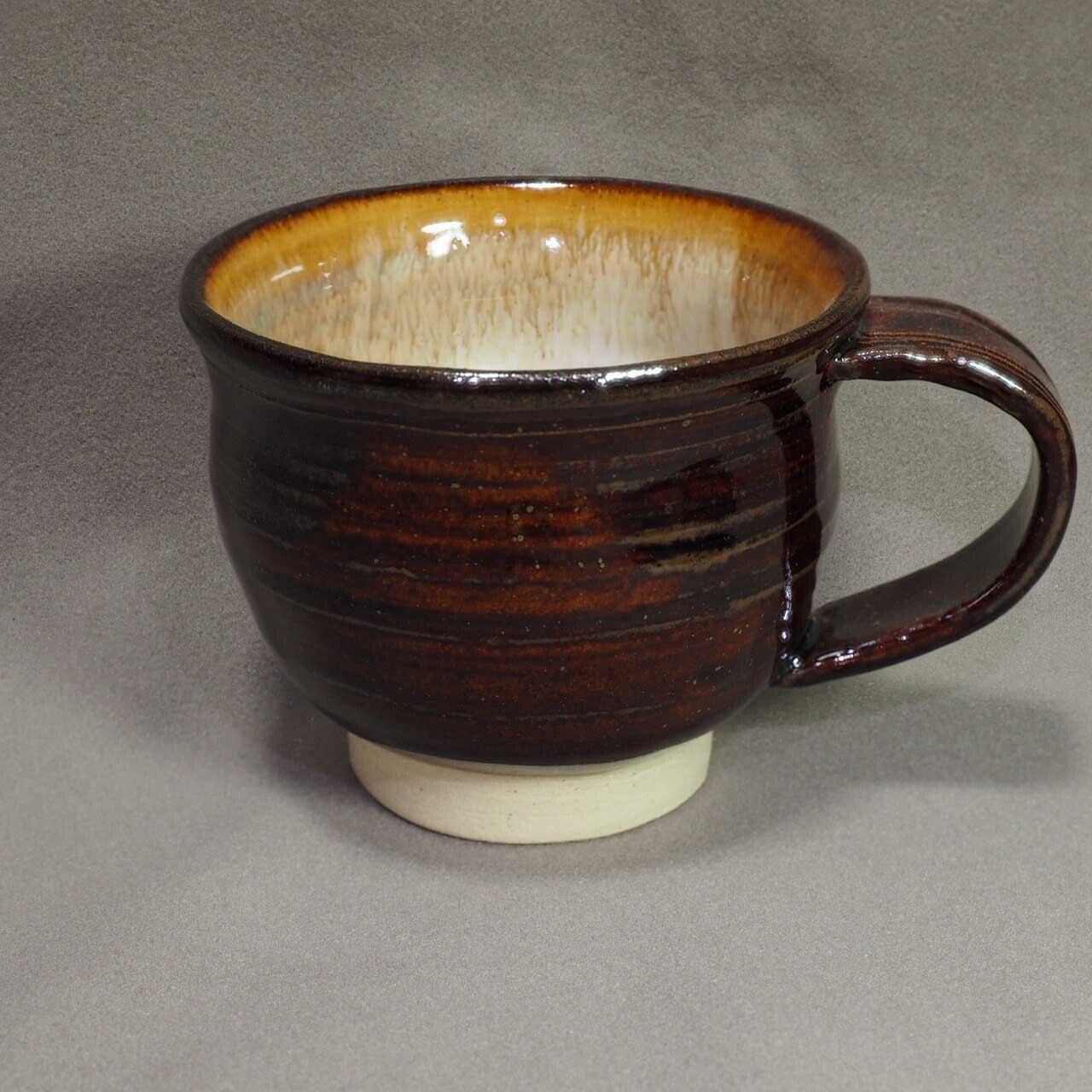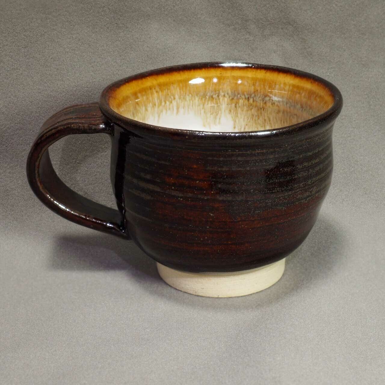 シックなこげ茶色の、丸みのある容姿のティーカップです。
