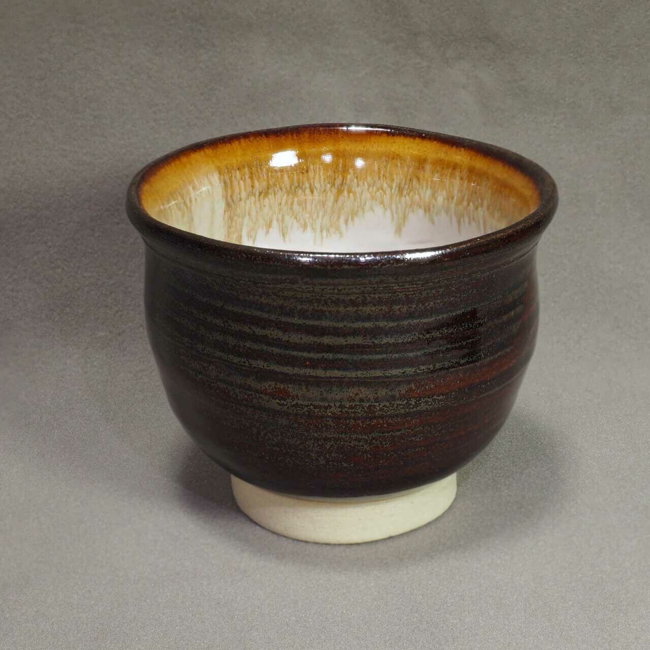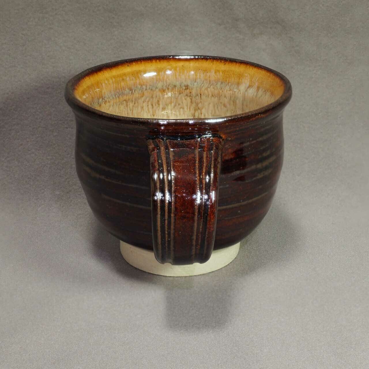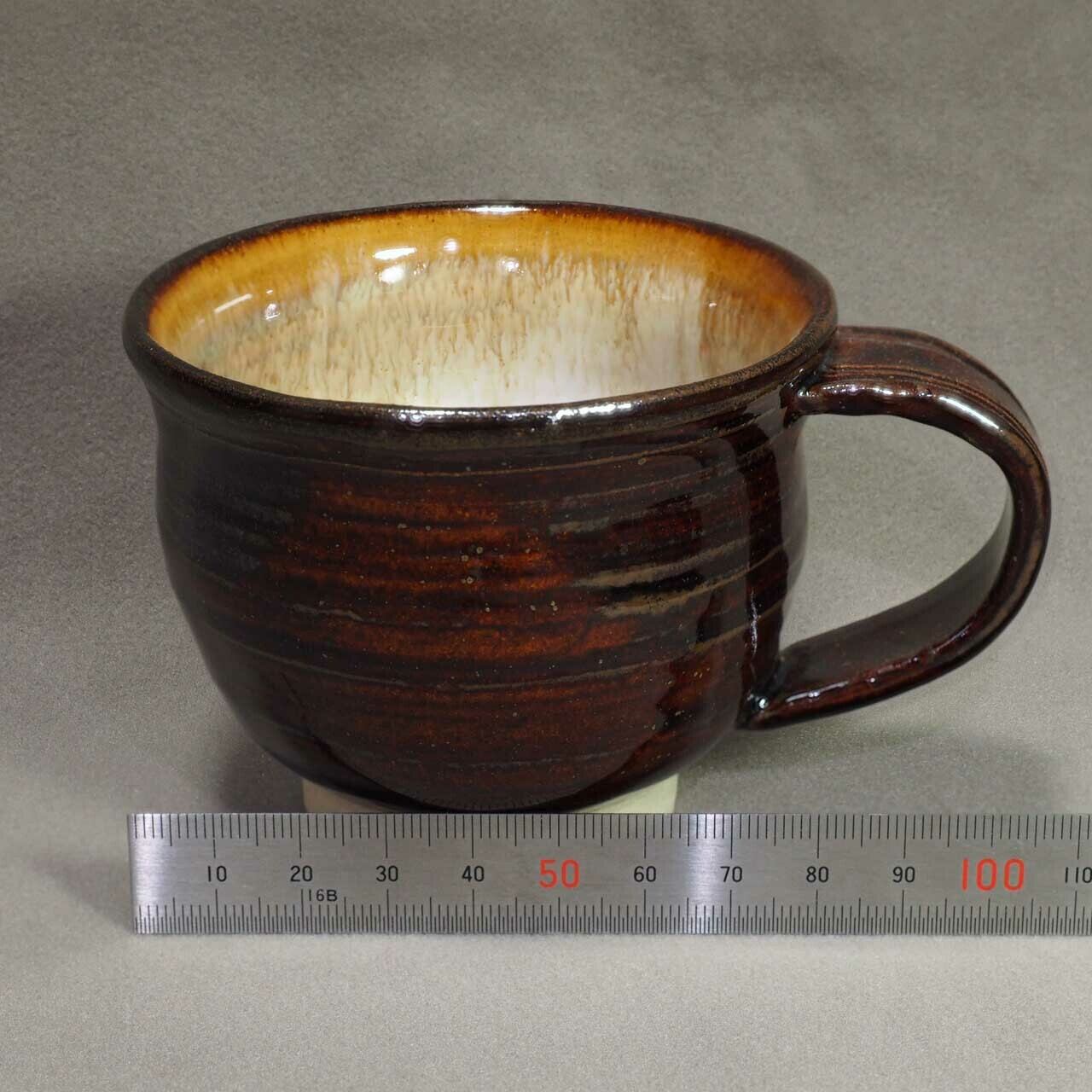 シックなこげ茶色の、丸みのある容姿のティーカップです。