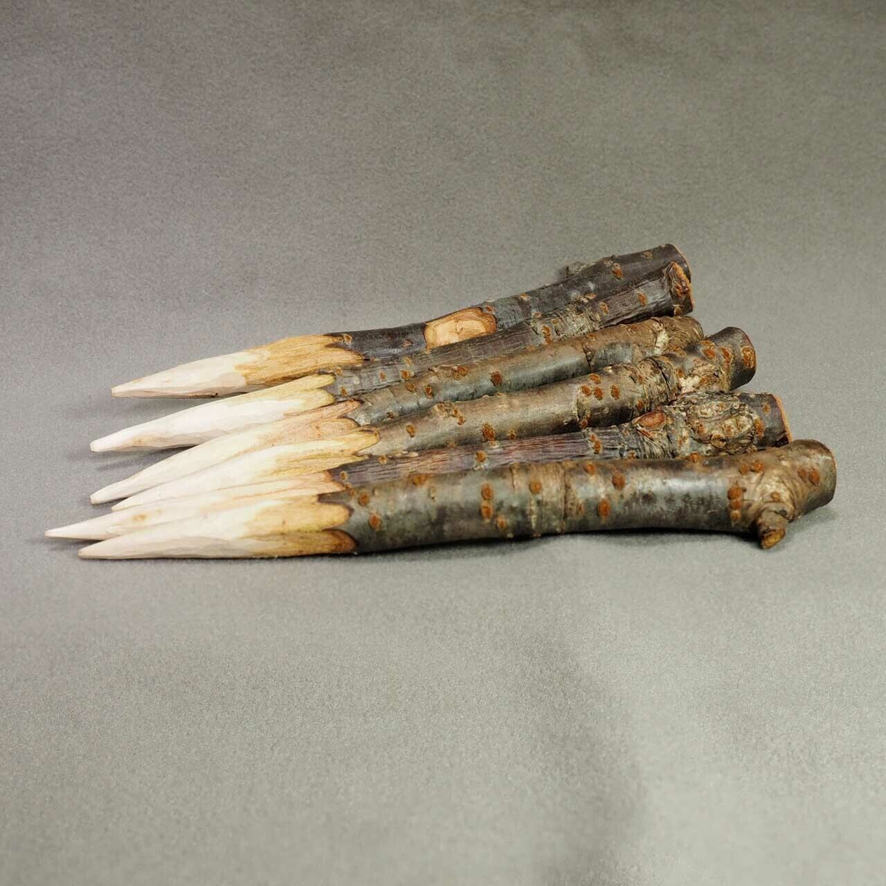桜の木から1本1本削りだした楊枝を6本。これに、楊枝に似合う器をセットしました。