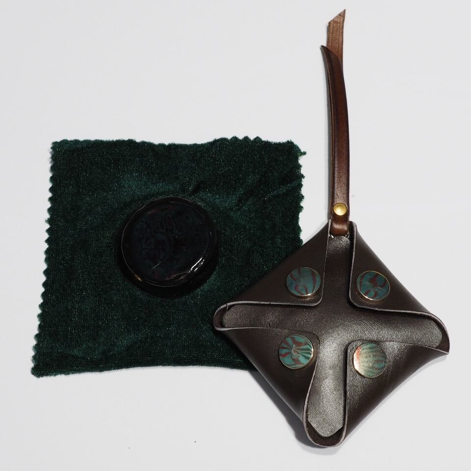 王小迪先生に、松脂専用ケースを製作していただきました。女性職人らしい、お洒落なデザインです。