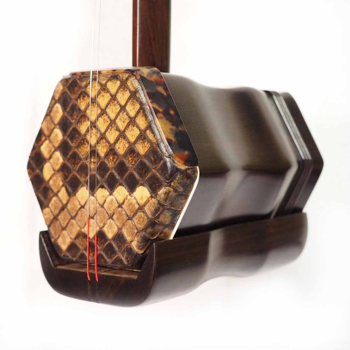 明清同時代におけるベトナム・ミャンマーの建築廃材、古い家具を材料として使用しています。永い年月を経ているため、水分はほとんど含まれず、たたくと特有の金属音がします。数多くの二胡愛好家やコレクターに愛されています。超五星の材料は、五星ランクよりさらに古く良質で貴重な材であり、限定生産です。