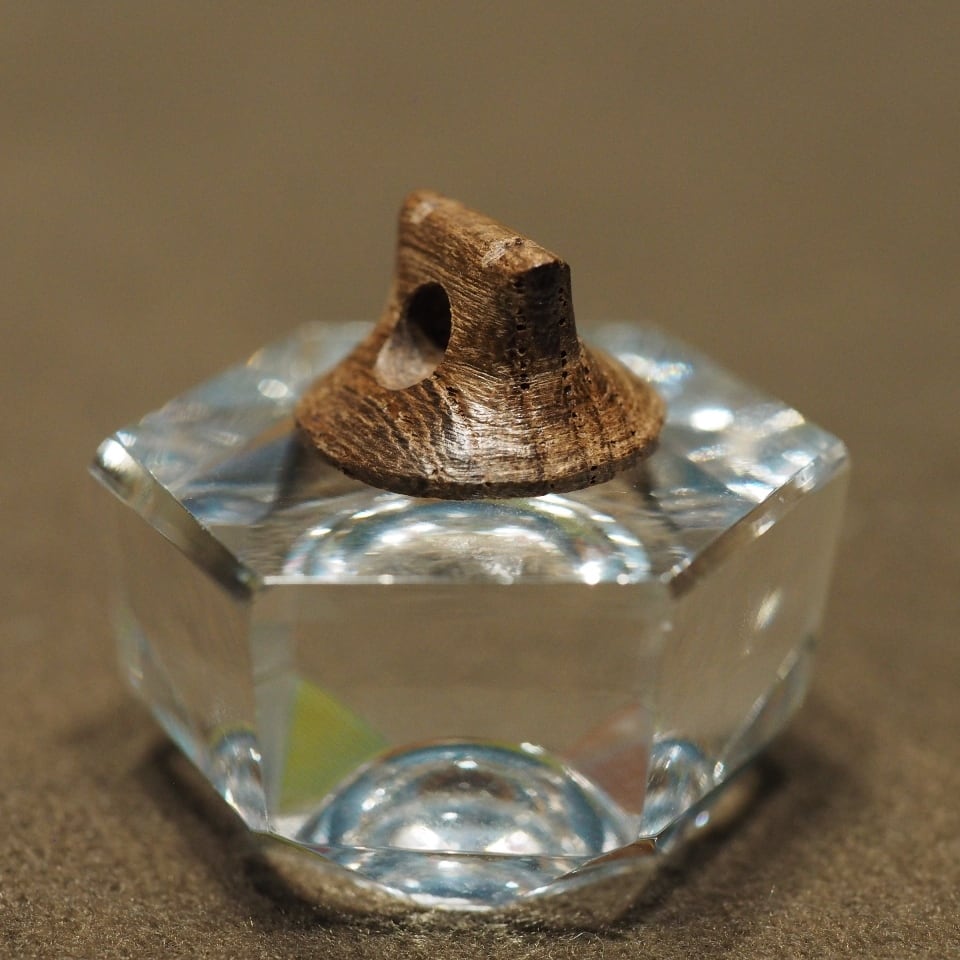 本材は埋もれ木の1つで、1000年オーダーで土中に埋まっていたもの。材自体は柔らかく軽め。厚みのある柔らかい音が特徴で、比較的引き込まれた二胡にお勧めです。