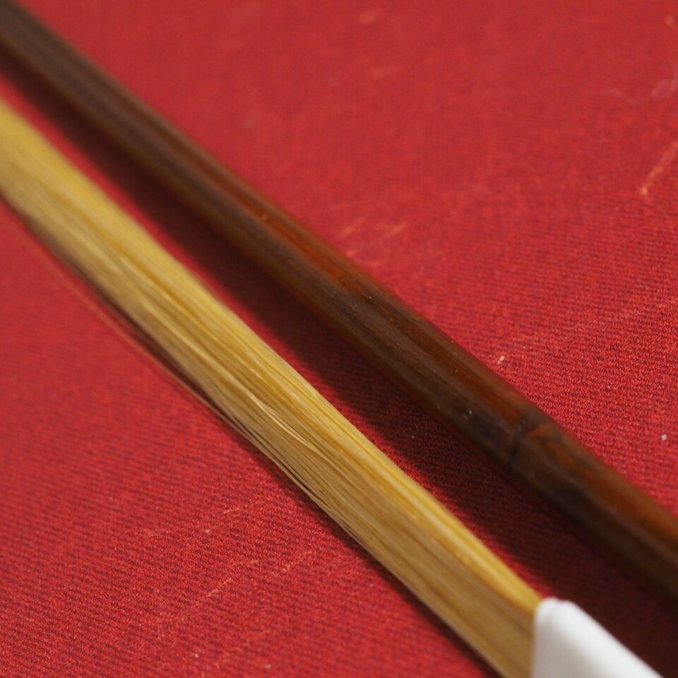 もともとは二胡皇后・宋飛氏が児童向け指導を行う際に使用するため、王小迪先生に製作を依頼されているものです。この弓には、王小迪先生の「こどもが使用するからこそ、よい材料を使いたい」という思いが込められています。