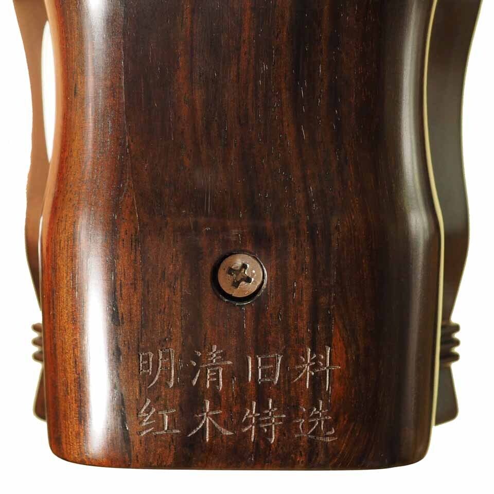 明清同時代におけるベトナム・ミャンマーの建築廃材、古い家具を材料として使用しています。永い年月を経ているため、水分はほとんど含まれず、たたくと特有の金属音がします。数多くの二胡愛好家やコレクターに愛されています。