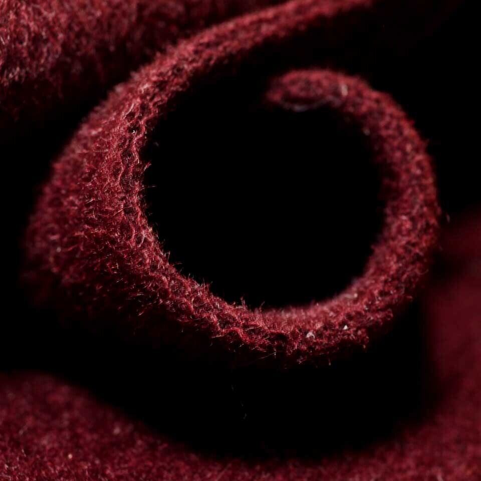 化繊フェルトでは成しえない最適な密度・弾力・厚みが、高いノイズ抑制機能と、蛇皮を押さえすぎない音量の維持を実現。弊社店頭での二胡メンテナンス業務で最も出番が多い部品の1つです。純羊毛製、二重構造。ワインレッドをセレクトしました。