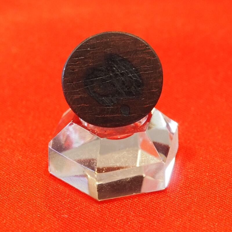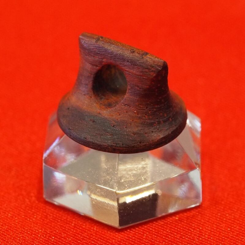 ※画像は、駒製作時のもので赤みを帯びた部分がありますが、紫檀は空気接触による酸化により、時間の経過とともに全体が暗紫色へと変化していきます。
