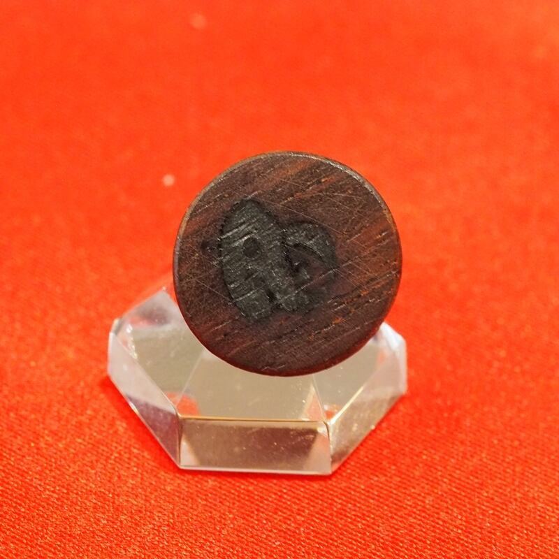 ※画像は、駒製作時のもので赤みを帯びた部分がありますが、紫檀は空気接触による酸化により、時間の経過とともに全体が暗紫色へと変化していきます。