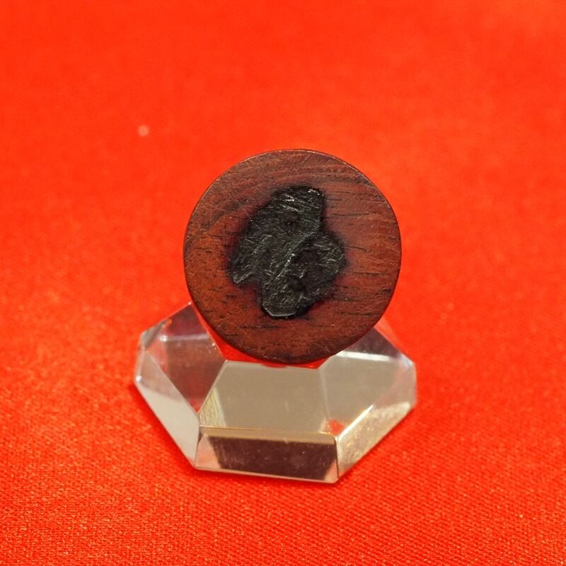 ※画像は、駒製作時のもので赤みを帯びた部分がありますが、紫檀は空気接触による酸化により、時間の経過とともに全体が暗紫色へと変化していきます。