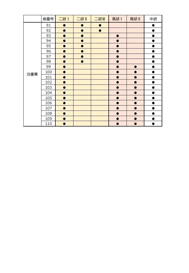 ※曲ごとの楽器構成は、画像の表にてご確認をお願いいたします。