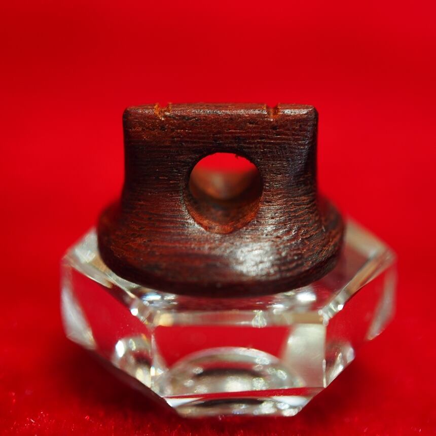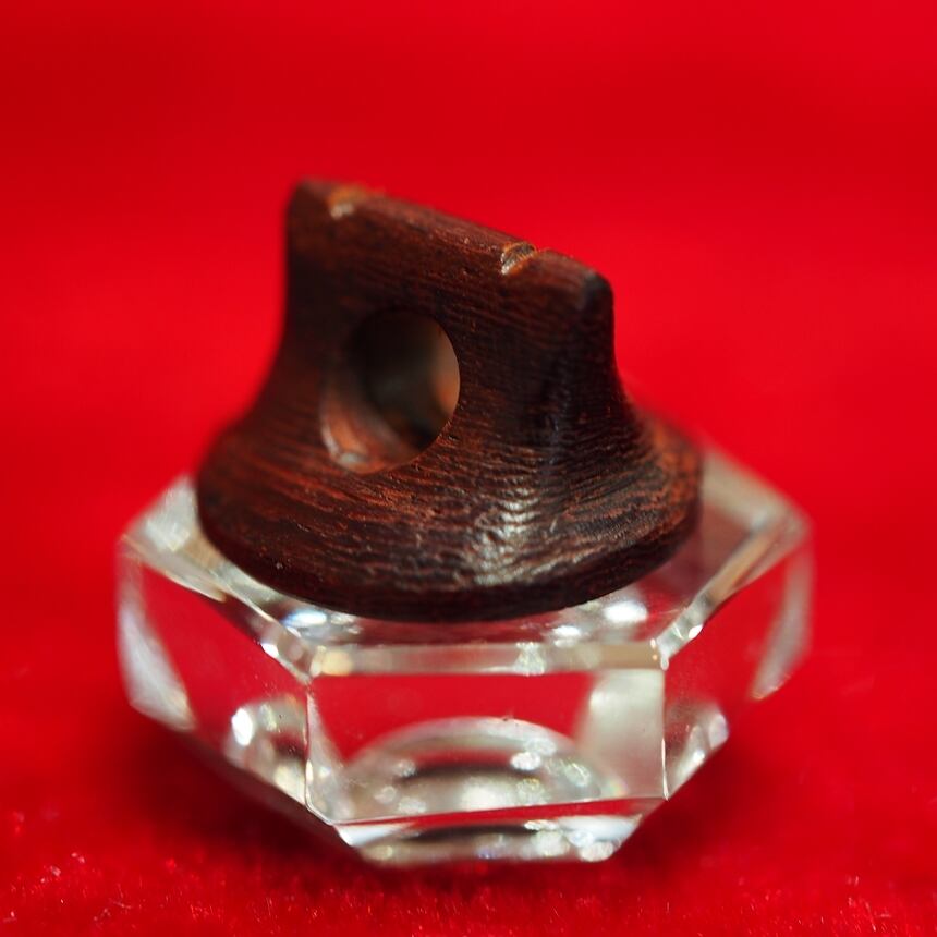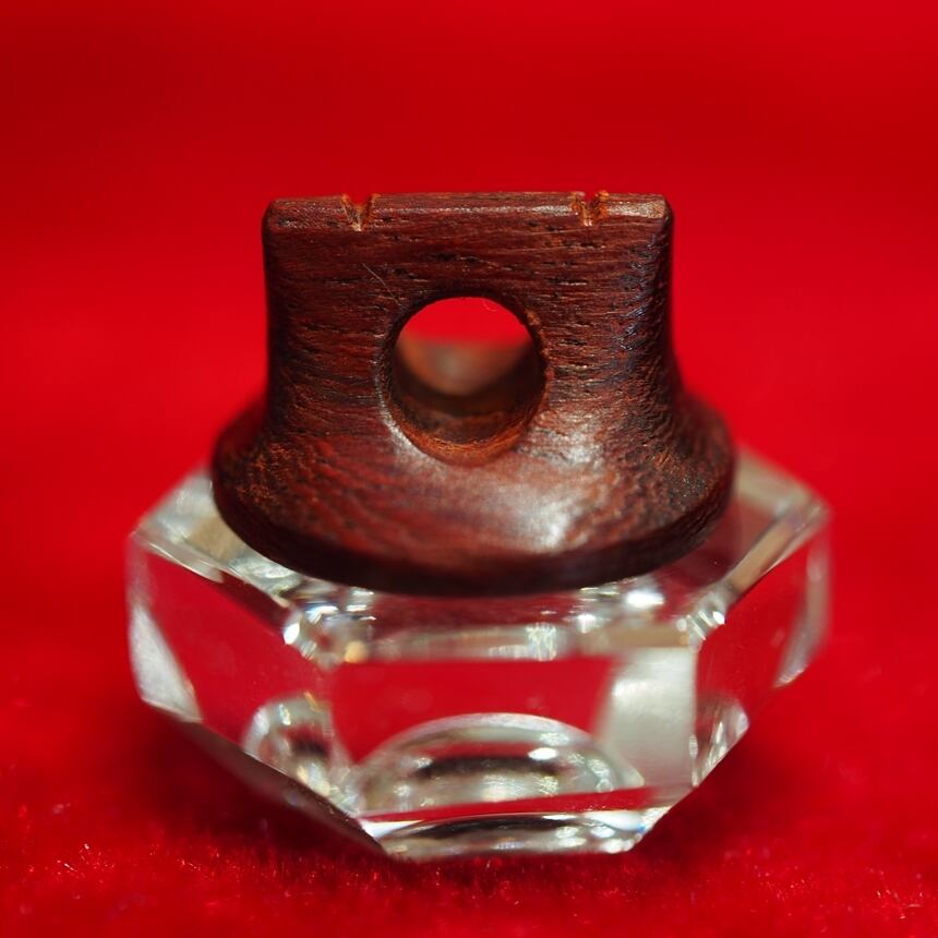 ※画像は、駒製作時のもので赤みを帯びた部分がありますが、紫檀は空気接触による酸化により、時間の経過とともに全体が暗紫色へと変化していきます。