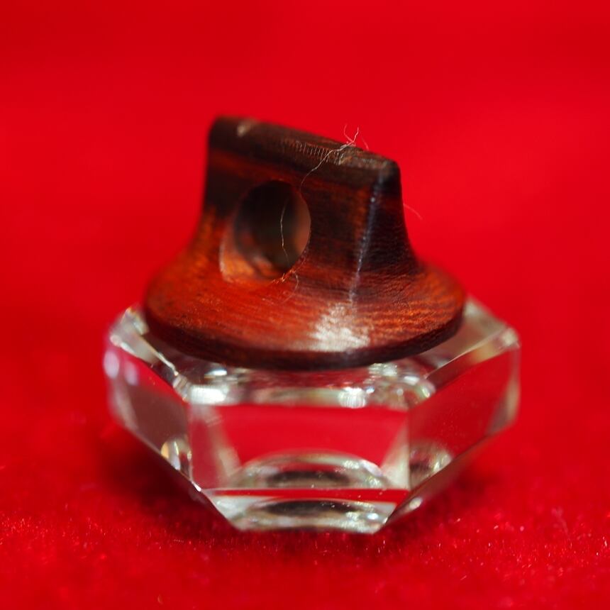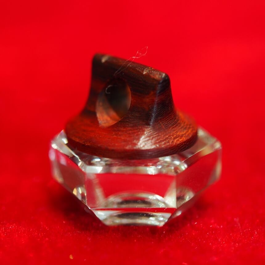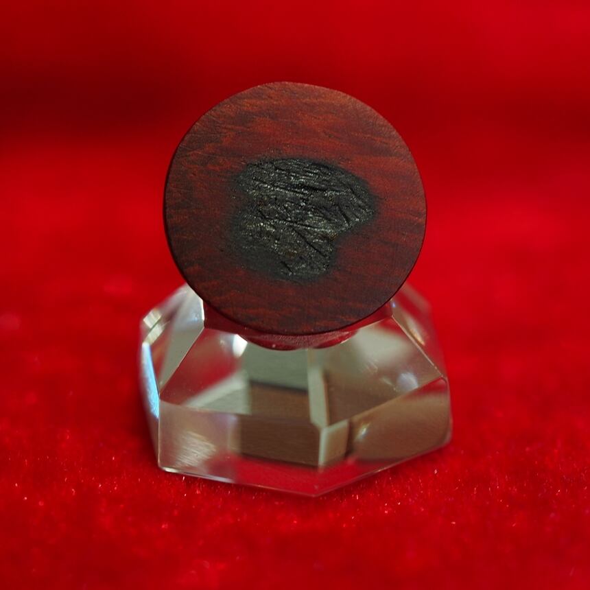 ※画像は、駒製作時のもので赤みを帯びた部分がありますが、紫檀は空気接触による酸化により、時間の経過とともに全体が暗紫色へと変化していきます。