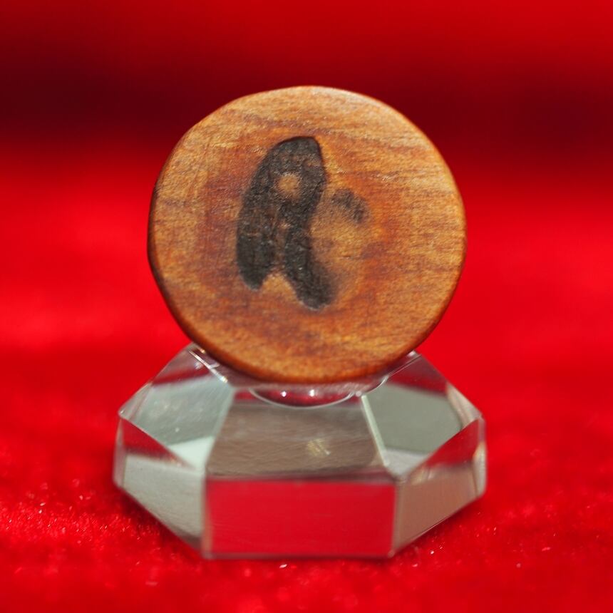 島根県隠岐島にある伊後神社の黒松。樹齢500年と推定され、伊後の大松ともいわれる御神木。松脂成分を多く含み、松の一般材と比較してはるかに重く緻密で水に沈み、家具や工芸品の材料として大変貴重な材。昭和時代に指定業者が管理伐採したもので、染み出る脂を落ち着かせるために約40年も蔵で寝かし、脂が結晶化している。磨くと鼈甲か琥珀のような透明感が顕在化し、2cm厚の材でも光を透し、 材自体が紅色を呈する。