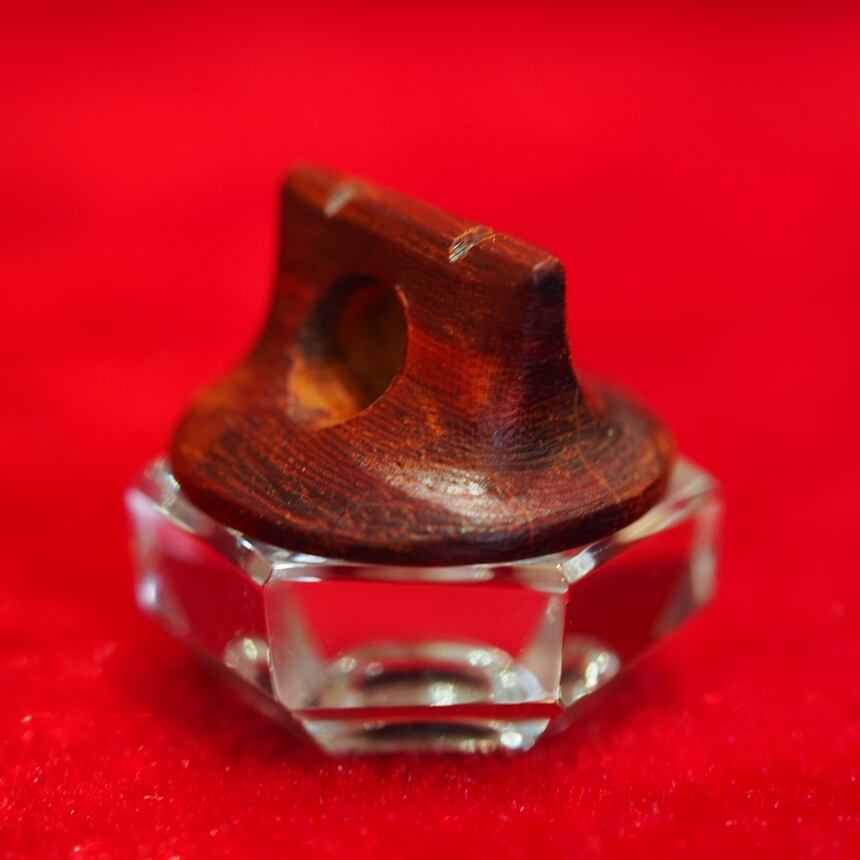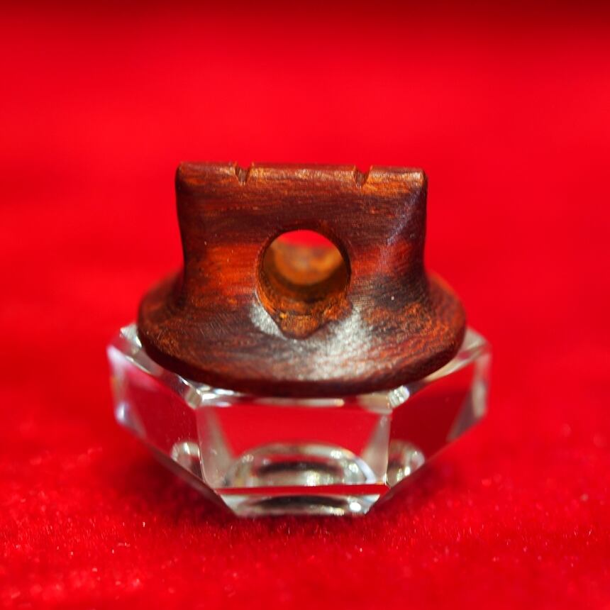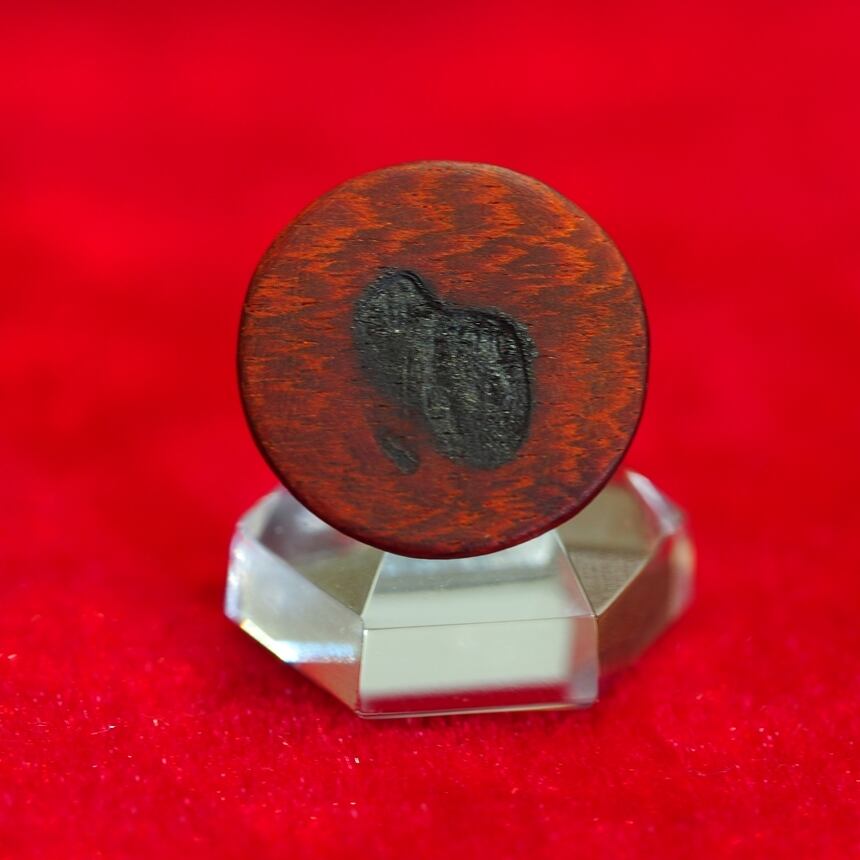 ※画像は、駒製作時のもので赤みを帯びた部分がありますが、紫檀は空気接触による酸化により、時間の経過とともに全体が暗紫色へと変化していきます。