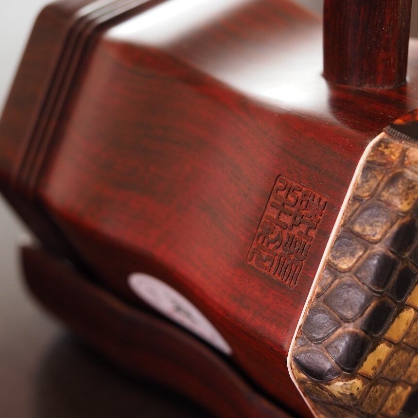 特徴:インド小葉紫檀の最高ランク品であり、二胡の音色はまろやかで潤いがあり、透き通り、高貴な空気感を醸し出す、究極の1本である。