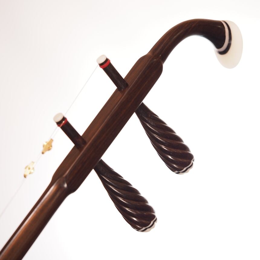 特徴:老紅木はもともと音色が厚く柔らかい。林生二胡の音色はさらに、低音から高音までしっかりと芯があり、演奏者の繊細な表現を受け止め音にする性能は特筆もの。
