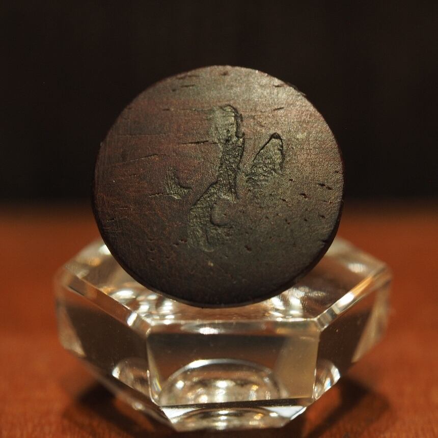 ※画像は、駒製作時のもので赤みを帯びた部分がありますが、紫檀は空気接触による酸化により、時間の経過とともに全体が暗紫色へと変化していきます。