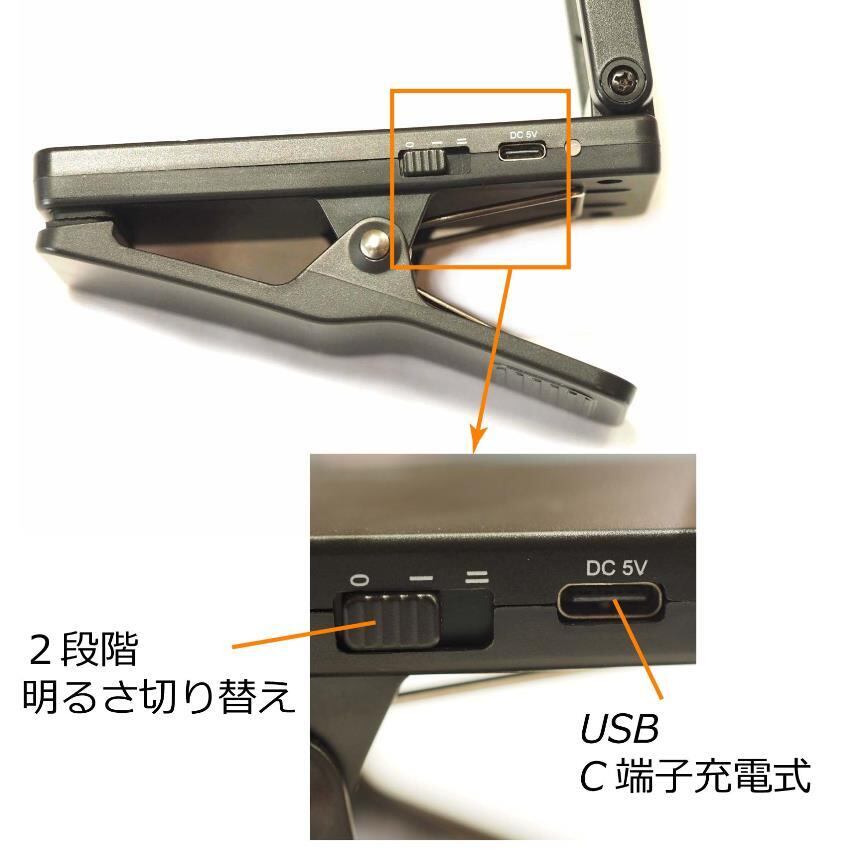 LED譜面台ライト 折り畳み式 USB充電式 2段階明るさ切替 クリップ式
