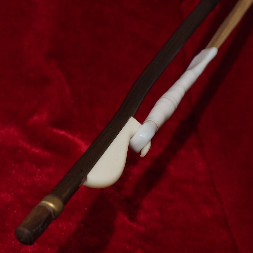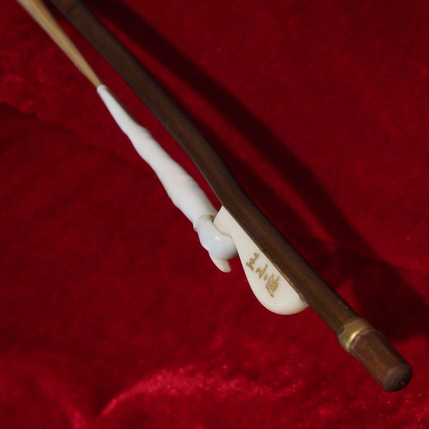 もともとは二胡皇后・宋飛氏が児童向け指導を行う際に使用するため、王小迪先生に製作を依頼されているものです。この弓には、王小迪先生の「こどもが使用するからこそ、よい材料を使いたい」という思いが込められています。