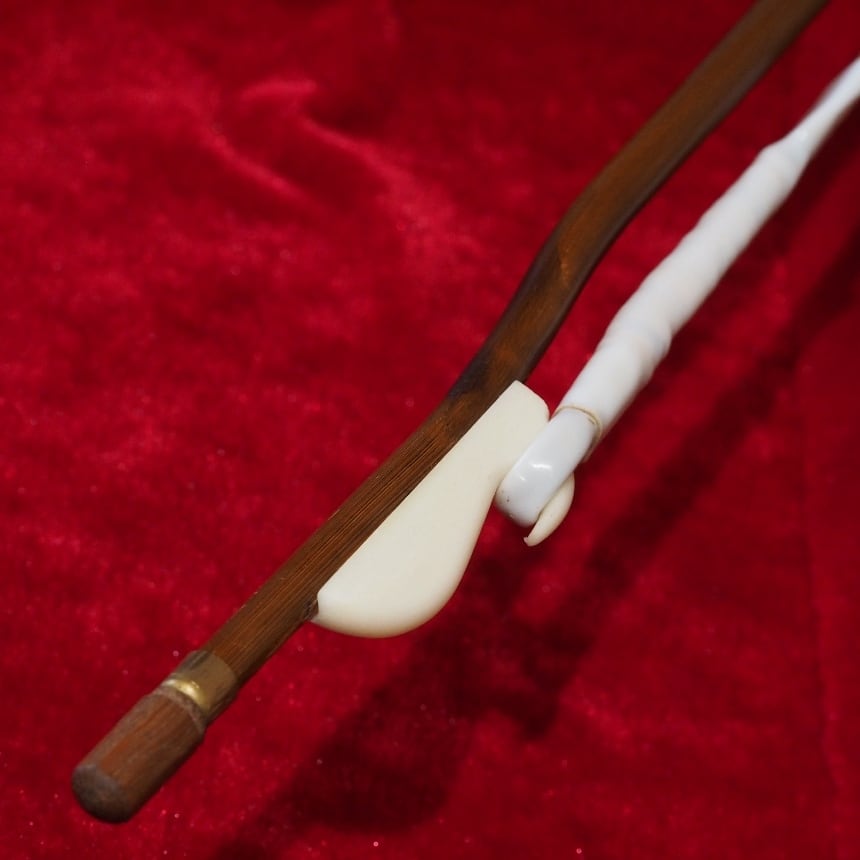 精品クラスの紅竹は、竹の太さが均一で節の断面が円形で整っており、弾力がよい弓になります。二胡皇后と呼ばれる著名演奏家「宋飛」氏は、この精品紅竹弓を愛用しております。