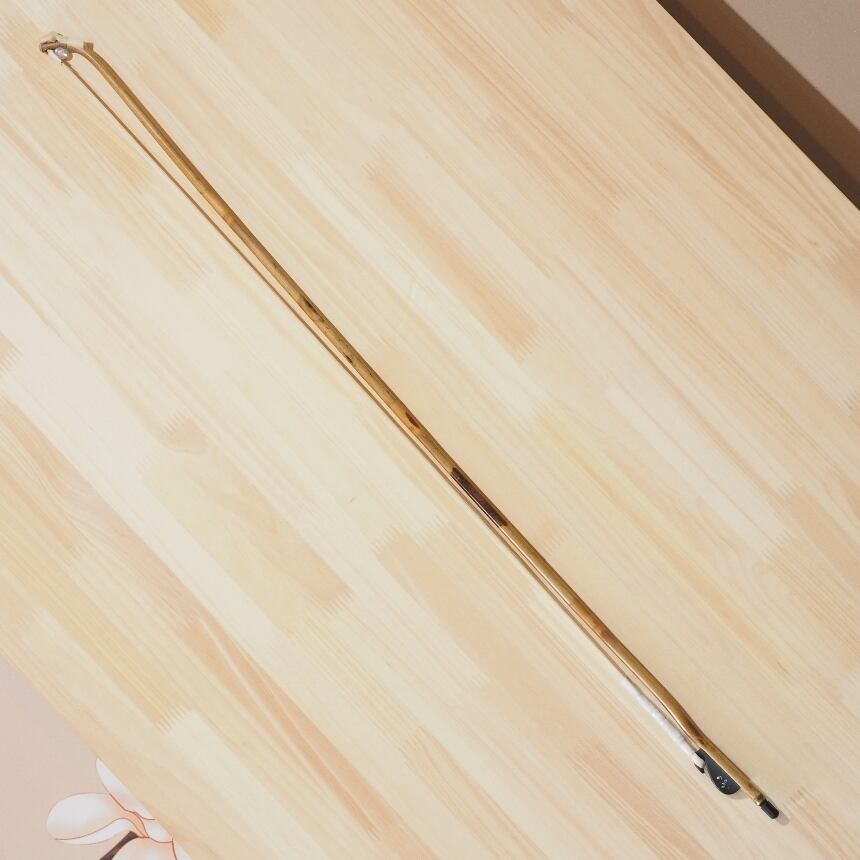 中胡弓は、太い弦をしっかりと響かせるために、二胡弓と比較して竹は太く硬めで、長さが86cmと長めです。